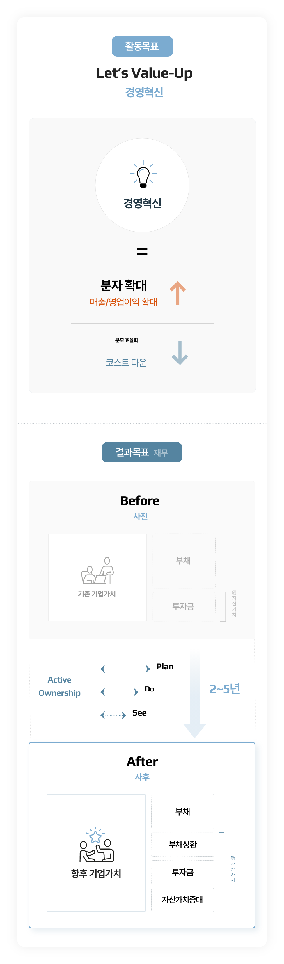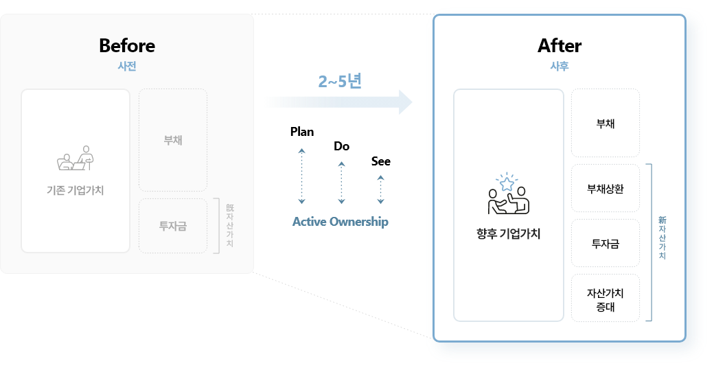 Sleeves rolled up소매를 걷어붙이는 Active Ownership적극적 주인의식으로 Value Creation가치창조를 지원합니다
